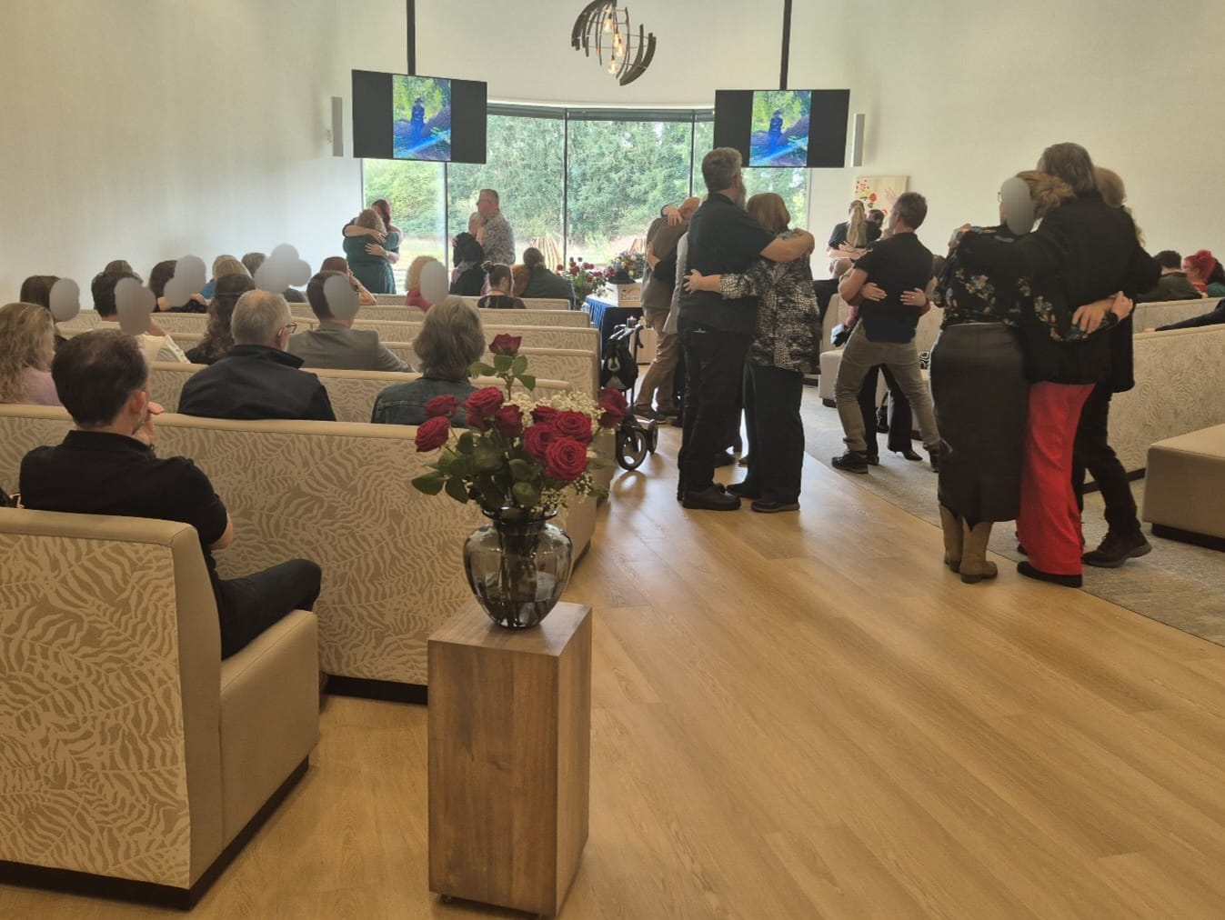 En terwijl zij daar danst, lijkt het alsof liefde sterker is dan het afscheid — alsof hij nog één keer met haar meebeweegt. Daar, in die aula, werd verdriet gedragen door liefde en hun liefde danste door tot het laatste moment…